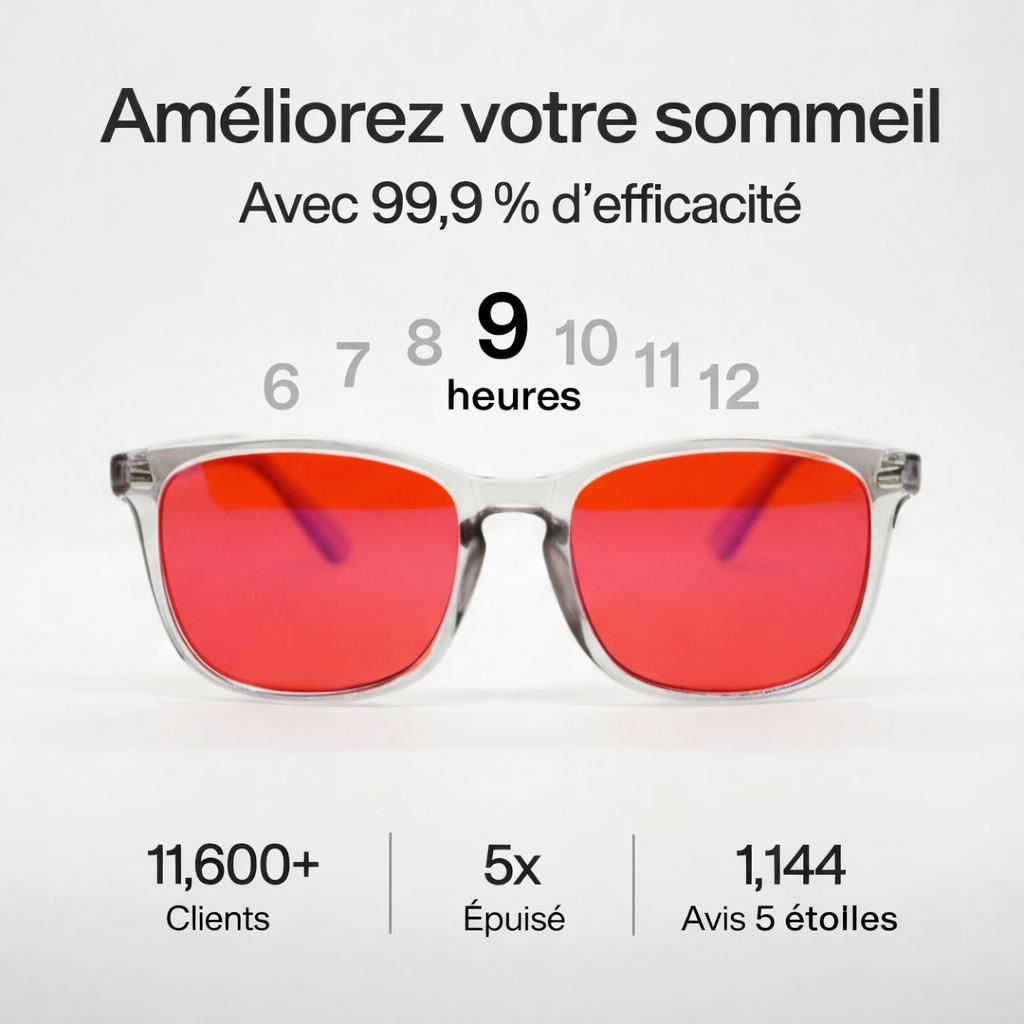 Ces lunettes bloquent 99 % de la lumière bleue et verte (400-570 nm), ce qui supprime la production de mélatonine. En filtrant cette lumière, elles aident votre corps à produire naturellement de la mélatonine, favorisant un sommeil plus rapide et plus profond sans avoir besoin de suppléments