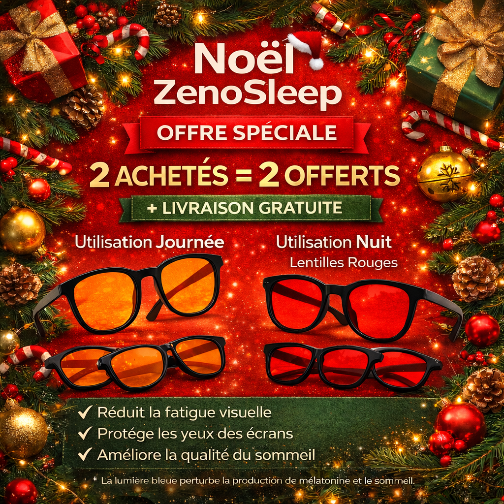 Les lunettes ZenoSleep bloquent les longueurs d’onde (jusqu’à 540 nm) qui empêchent ton cerveau de produire de la mélatonine, l’hormone du sommeil.